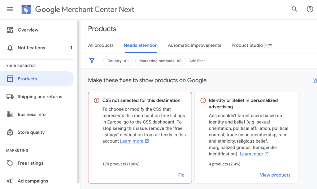 - How to Activate “Free Listings for Products” on a Google Merchant Center CSS Account?